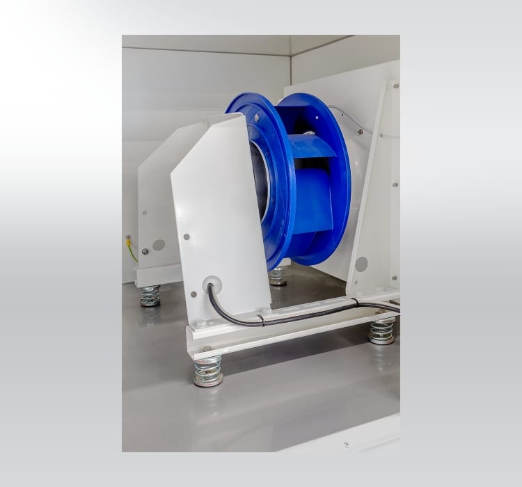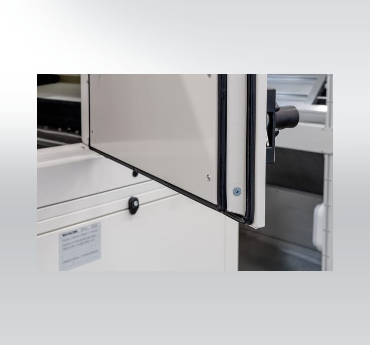 Smooth, crevice-free interior with antimicrobial powder coating and materials tested per ISO 846 to prevent microbial growth.