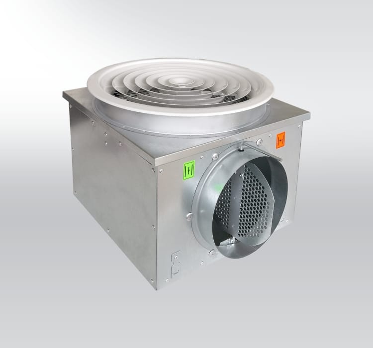 Supplied air is separated and spread equally in a 360° pattern for uniform room coverage.