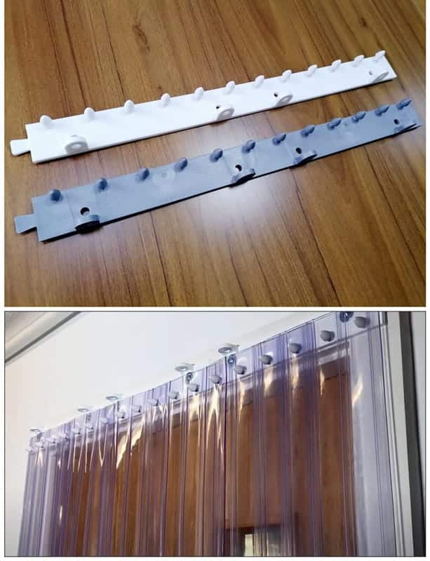 Installs quickly on door frames of cold rooms and freezers using standard aluminum tracks or channels.
