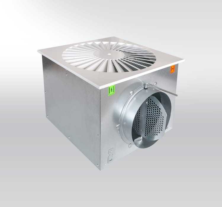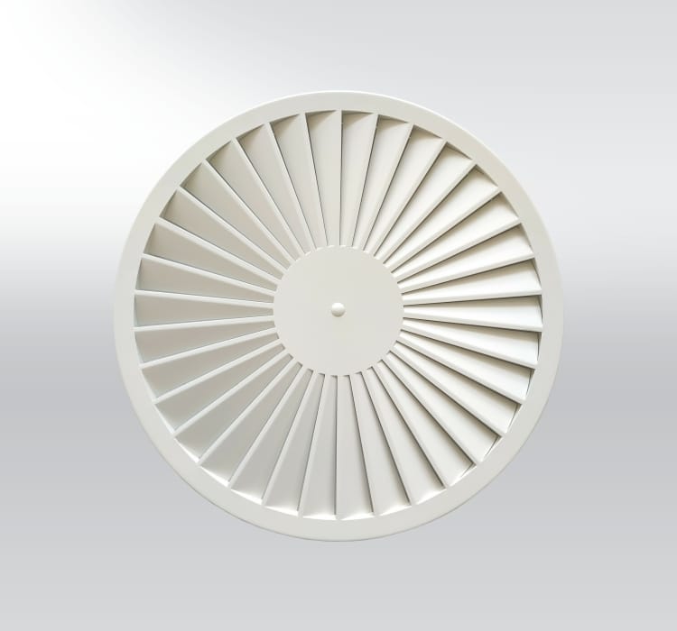 A terminal HVAC air distribution element with fixed, pre-set blades that create a consistent swirling air pattern. It is designed for efficient air mixing and temperature equalization in ventilated or cooled spaces, offering a reliable, maintenance-free solution.