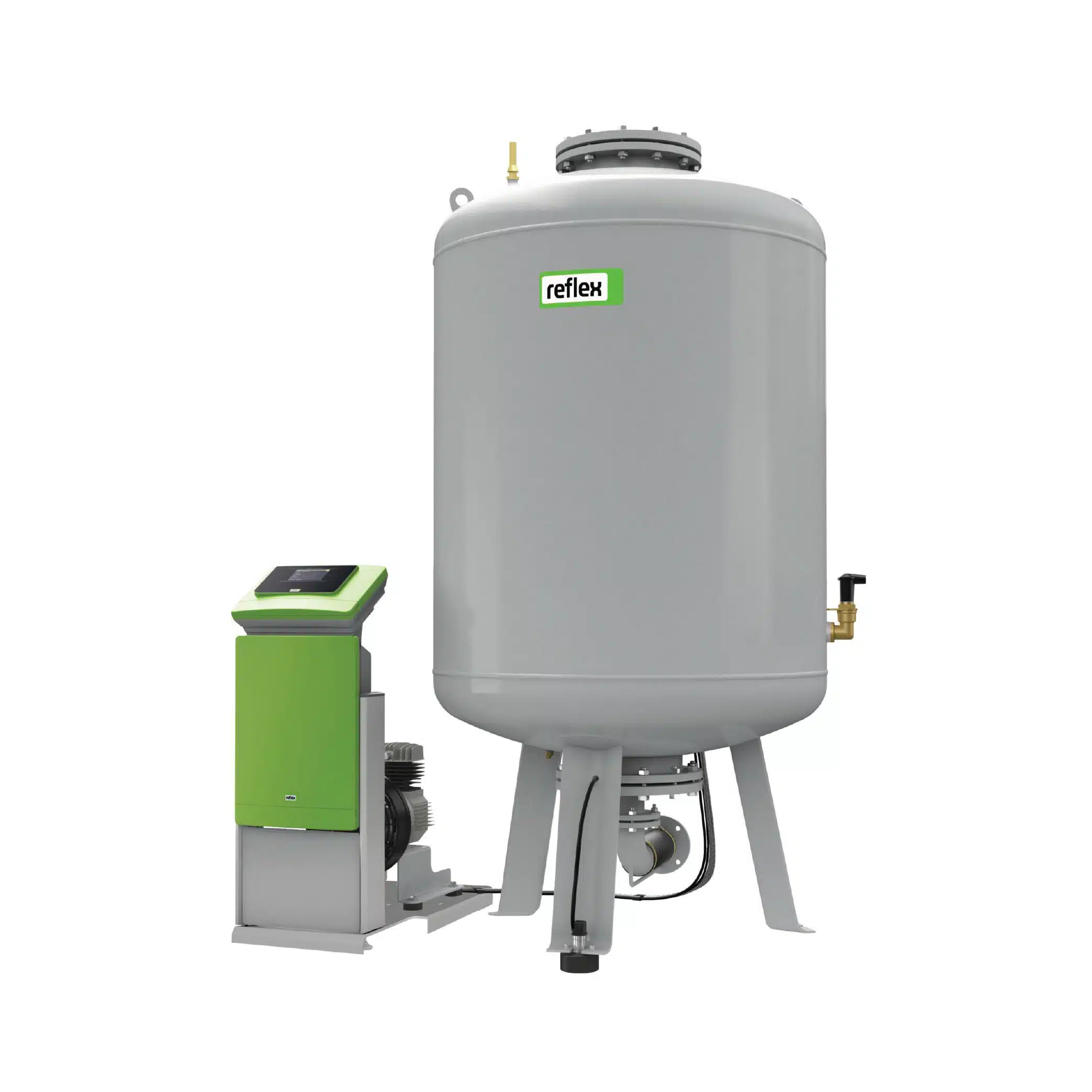 أنظمة الضغط الصناعية Reflexomat للمشاريع الضخمة (200-5000لتر). خيارات Control Touch/Basic، 6/10 بار، طاقة 400V، إطار ألومنيوم وحداتي لتطبيقات التكييف واسعة النطاق.