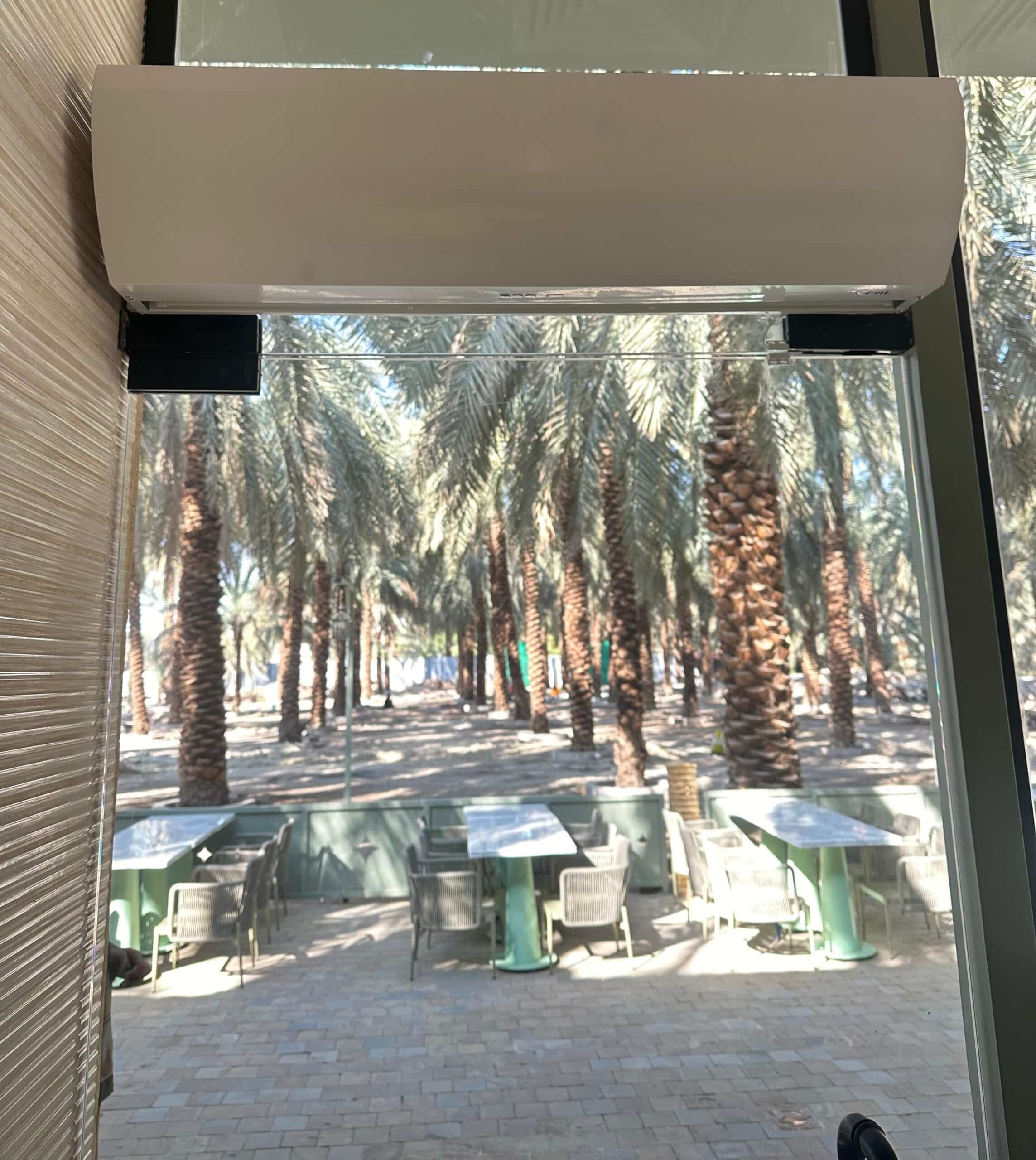 يغطي المداخل بارتفاع يصل إلى 5.5 أمتار بفعالية، مما يلغي الحاجة إلى وحدات متعددة أو حواجز فيزيائية.