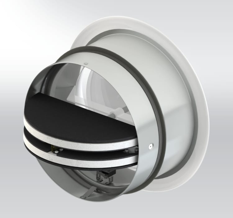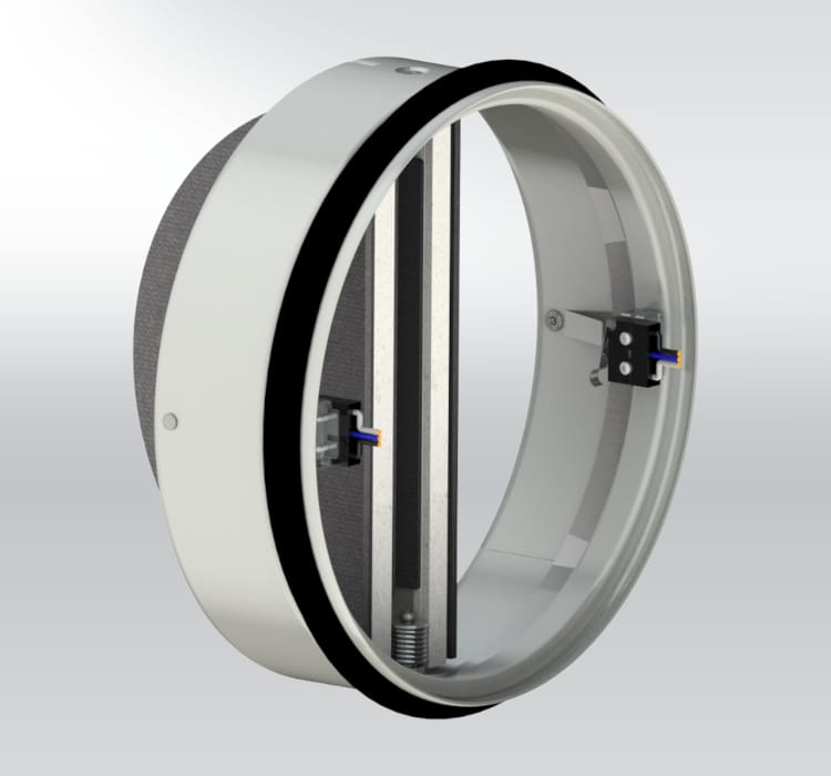 الهيكل الممتد يتضمن صماماً، ويعمل كصمام حريق وكطرف لمجرى الهواء.