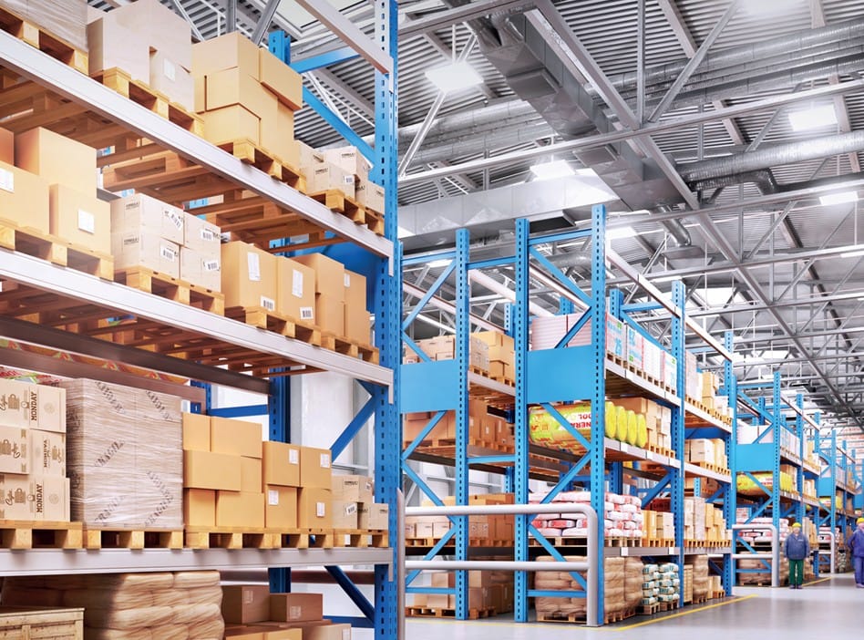 القاعات الصناعية الكبيرة، المستودعات، المنشآت الرياضية.