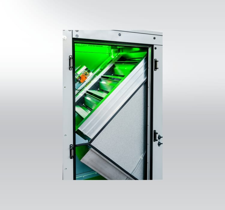 معتمدة EUROVENT، متوافقة مع Ecodesign، بمكونات عالية الكفاءة (مراوح EC، مبادلات حرارية متطورة) لتكاليف تشغيل منخفضة.